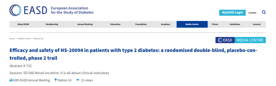 The 60th Annual Meeting of the European Association for the Study of Diabetes (EASD) was held in Madrid, Spain, from 9 to 13 September 2024. Hansoh Pharma's HS-20094 (a novel dual GIP and GLP-1 Receptor Agonist) Phase II clinical Study Data were presented in the form of an short oral discussion.